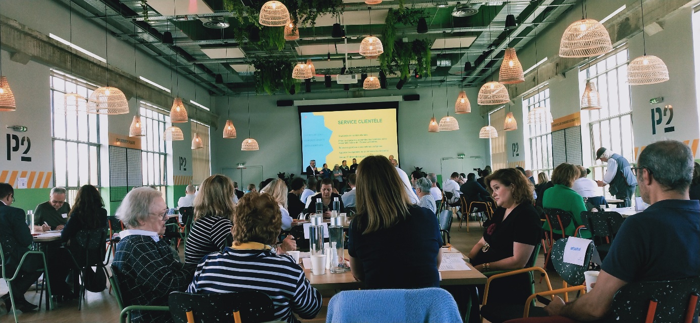 De gros moyens ont été mis en jeu pour nous recevoir : dans une salle immense, nous avons assisté à un show très infantilisant, à l’américaine : on nous a demandé d’applaudir tout et tout le monde et … nous-même en permanence. On devait être positif et dans la bonne humeur.