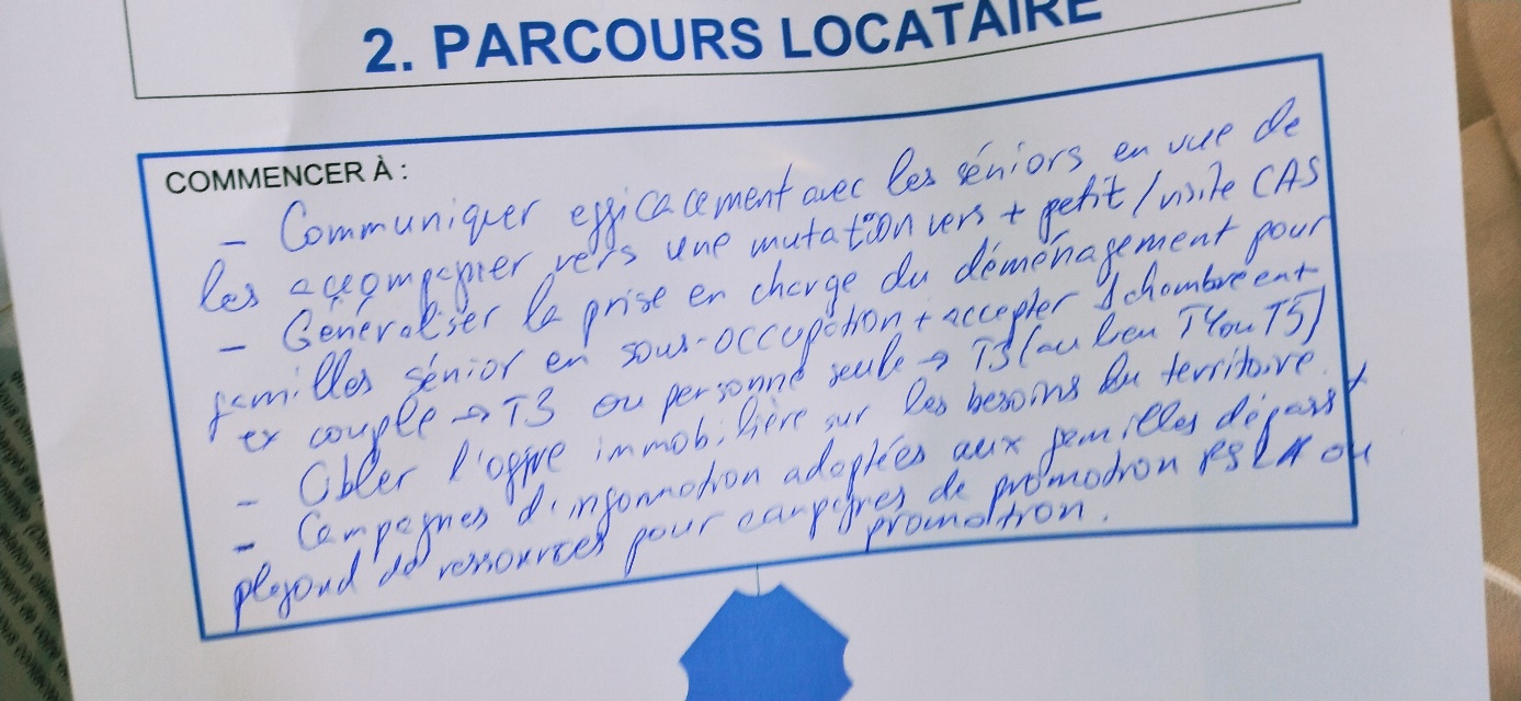 Surtout, surprise quand nous avons vu nos propositions notées par 3F : elles ne correspondent pas ! On a eu le temps de photographier ce qu’avait noté le cadre 3F qui prenait note de nos discussions. Ce n’est pas du tout ce que nous proposions.